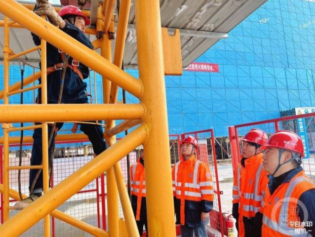 ▲中梁山大修基地建设者开展塔式起重机安全检查